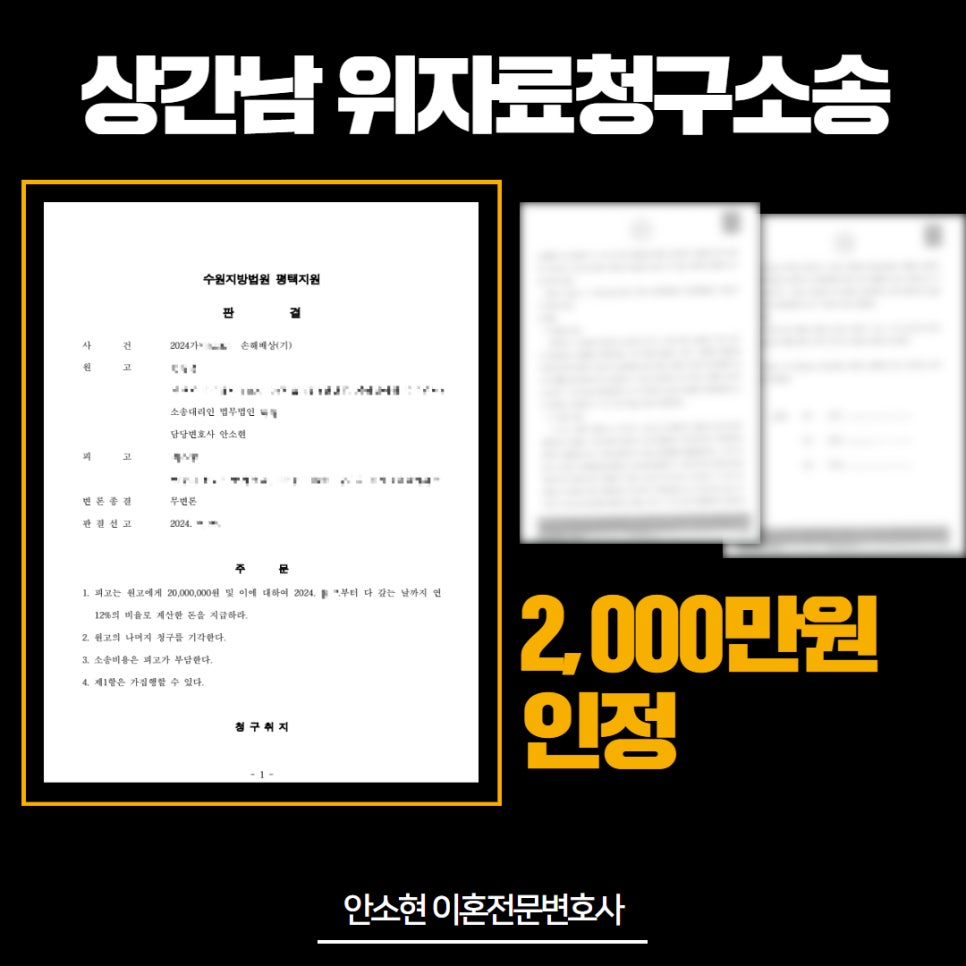수원상간남소송, 위자료 ‘2,000만원’ 받은 사례